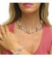 Collana catena maglia tonda argentata intrecciata con maglie rosate.
