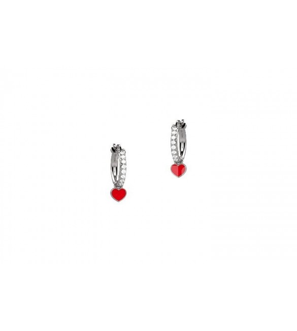 Orecchini Cerchio Bambina Gioielli Nanan Bijou argento cuore smalto rosso nan0370