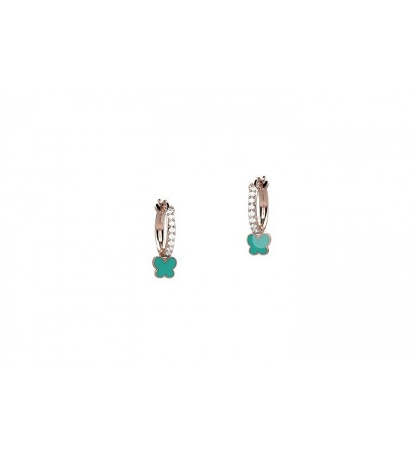Orecchini Cerchio Bambina Gioielli Nanan Bijou argento rosato farfalla smalto verde nan0359