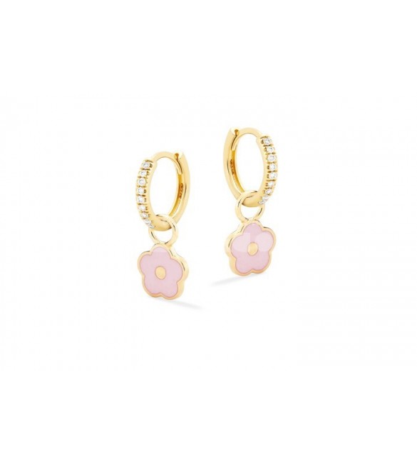Orecchini Cerchio Bambina Gioielli Nanan Bijou argento fiore smalto rosa nan0479