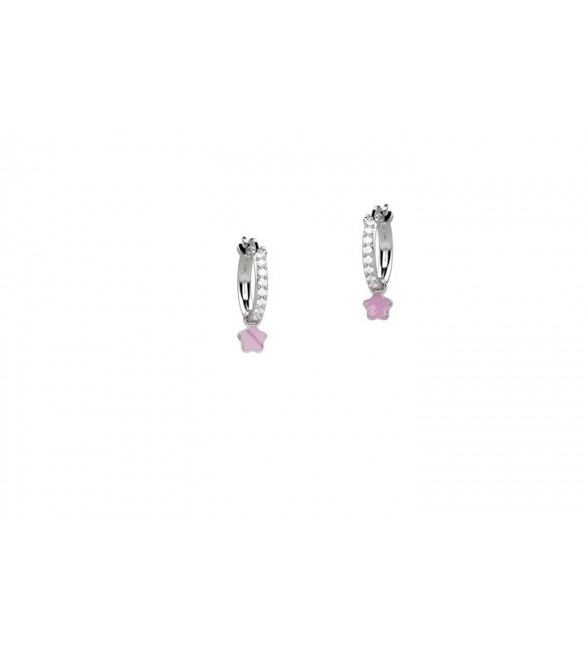 Orecchini Cerchio Bambina Gioielli Nanan Bijou argento stella smalto rosa nan0363