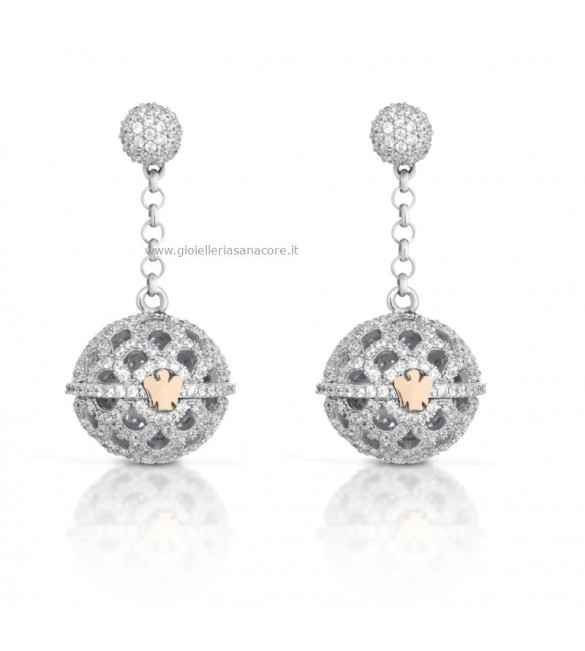 Orecchini Chiama Angeli in argento 925/1000, zirconi bianchi e angelo rosato.
