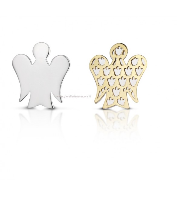 Orecchini Angelo a lastra e traforato oro bianco e giallo 375/1000