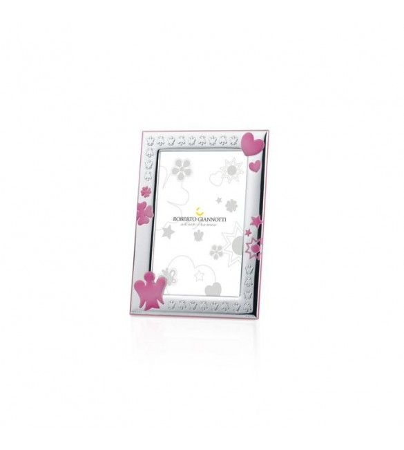 Cornice Bambina Roberto Giannotti con Angelo, Quadrifoglio smalto Rosa gico13