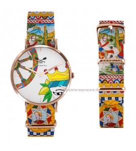 Grazie alla varietà di quadranti e cinturini potrai creare il "Tuo" orologio scegliendo tra i vari temi Sicilia, Natura, Maiolica, Melograno, Floreal