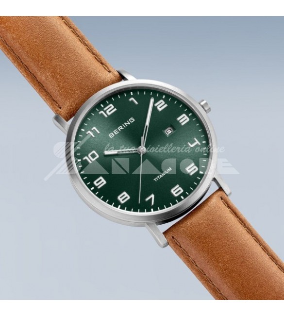 Orologio Solo Tempo Uomo Bering Titanio Ultra Leggero verde 18640-568