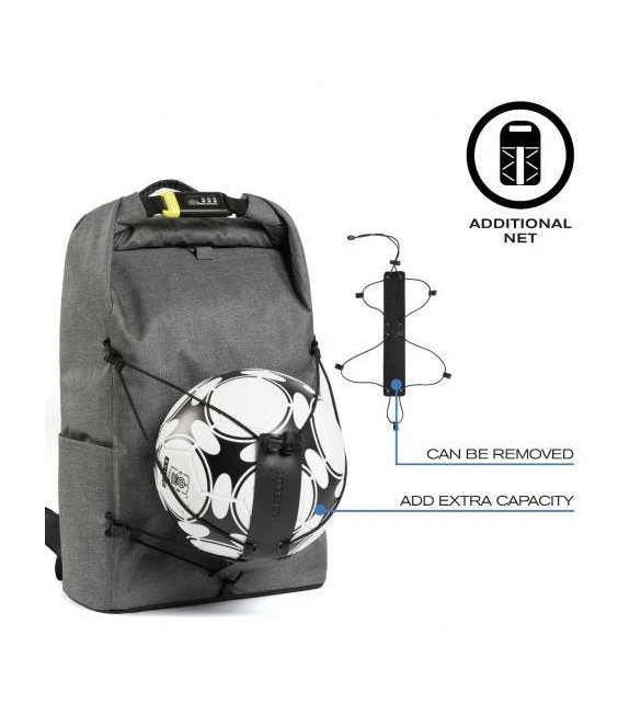 Dispone di tasche nascoste sul retro e nella tracolla per carte di credito, con protezione RFID. Urban è inoltre dotato di una tasca laterale per la borraccia e di una rete elastica staccabile per l'attrezzatura sportiva.