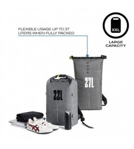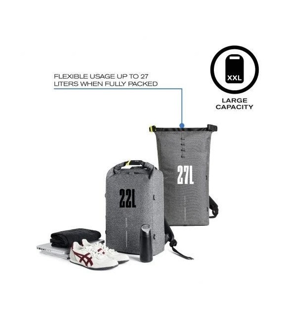 Lo zaino antifurto Urban Lite può essere completamente chiuso arrotolando il comparto principale e bloccandolo con la chiusura a combinazione rinforzata in acciaio. Questa funzione può essere utilizzata per bloccare la borsa legandola aad un oggetto fisso.