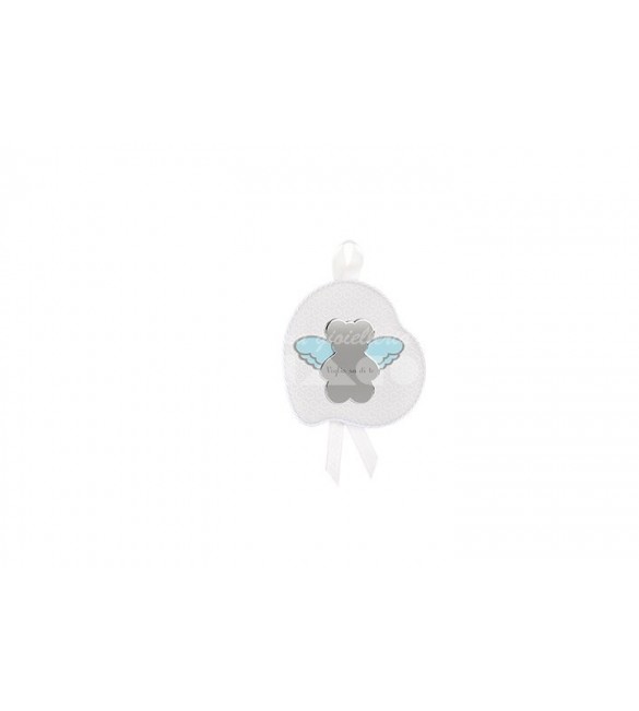 Grazioso capoculla Nanan a forma di cuore, caratterizzato dalla sagoma del dolce orsetto Tato in argento che, premuto, emette una dolce melodia che coccola il tuo bimbo nella sua culla o nella carrozzina.