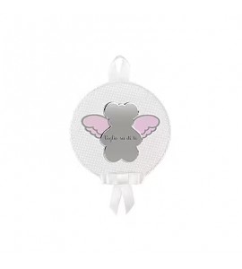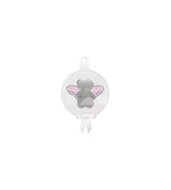 Grazioso capoculla tondo Nanan, caratterizzato dalla sagoma del dolce orsetto Tato in argento che, premuto, emette una dolce melodia che coccola il tuo bimbo nella sua culla o nella carrozzina.